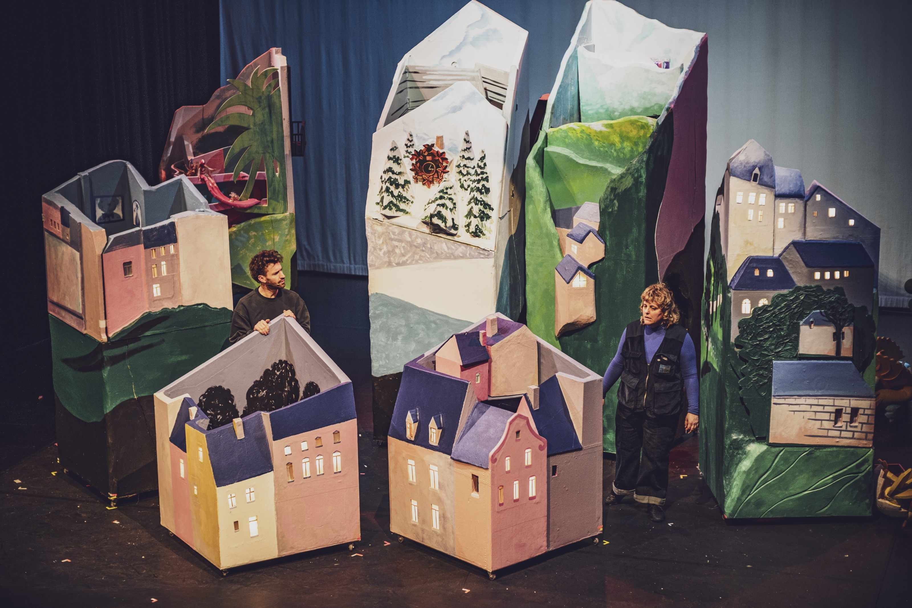 AMAI SPECIAAL CHAPEAU zet de deuren open naar een wereld vol buitengewone gezinsvormen. Met (zelfgemaakt) speelgoed en een landschap dat lijkt op een reuze-uitklapboek, bouwen twee volwassen mensen de wereld en het mensbeeld waarin ze willen dat hun dochter opgroeit.